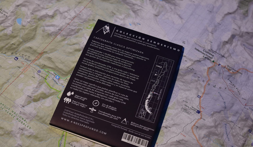 Enfocado para el caminante, carreras de aventura y potenciar el turismo local de intereses especiales como el trekking. Es un mapa extenso, con excelentes detalles de relieve, por lo general para realizar en jornadas sobre cinco días.. Te entregamos un mapa que te inspirara a la exploración de nuestra tierra.